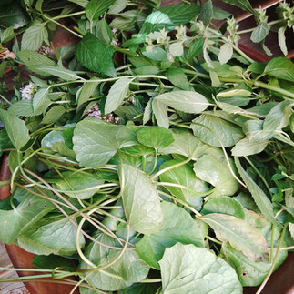 I enjoyed my time in the garden on this sunny, 27 degree Celsius, New Moon February day. I cut back herb plants that were encroaching on each other, happy to harvest to use now or dry for later. Produce pictured here include: avocado, plum, rosemary, strawberry, basil, bay, gotu kola, peppermint, lemon balm, Warragul Greens (perpetual spinach), yarrow, silverbeet. The flowers around the garden are still vibrant in their colour like these Portulaca flowers in a small pot. There is nothing quite like the colour palette of Nature!